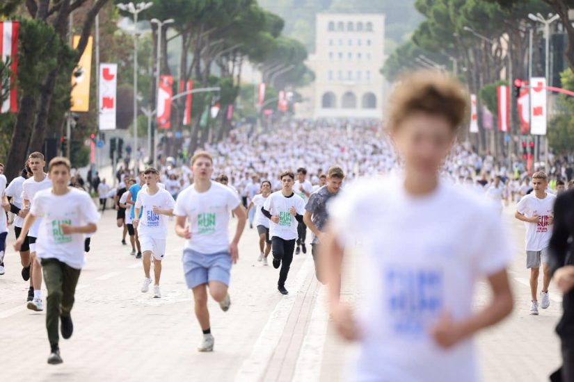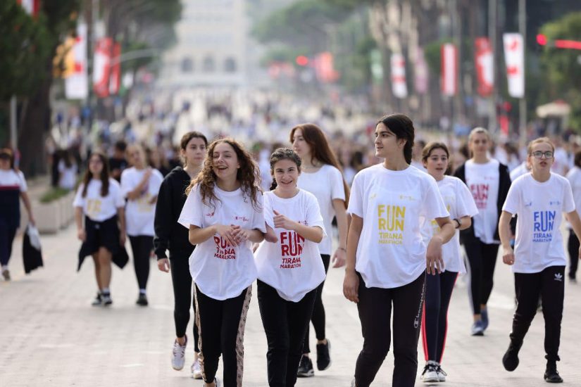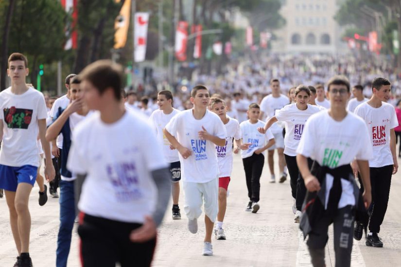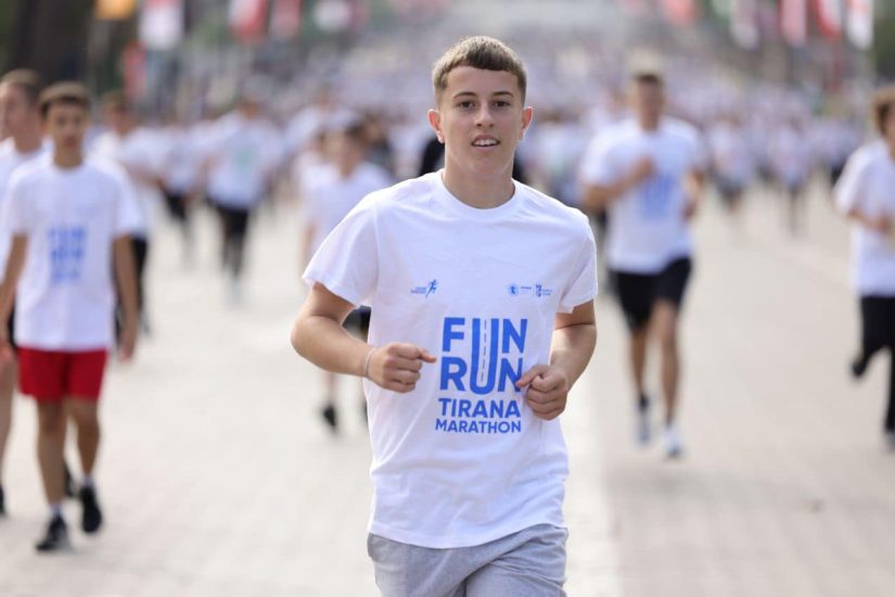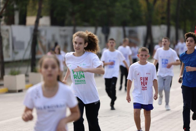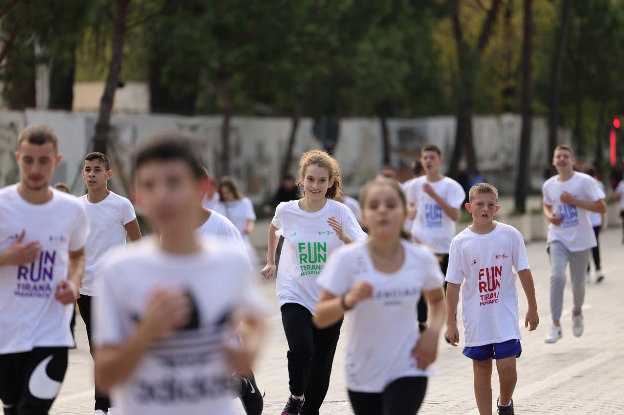 Nxënës të shumtë të shkollave 9-vjeçare të Tiranës zhvilluan sot Maratonën e fëmijëve në Bulevardin kryesor të qytetit për t’i paraprirë me një “Fun Run” nisjes të edicionit të gjashtë të Maratonës së Tiranës.