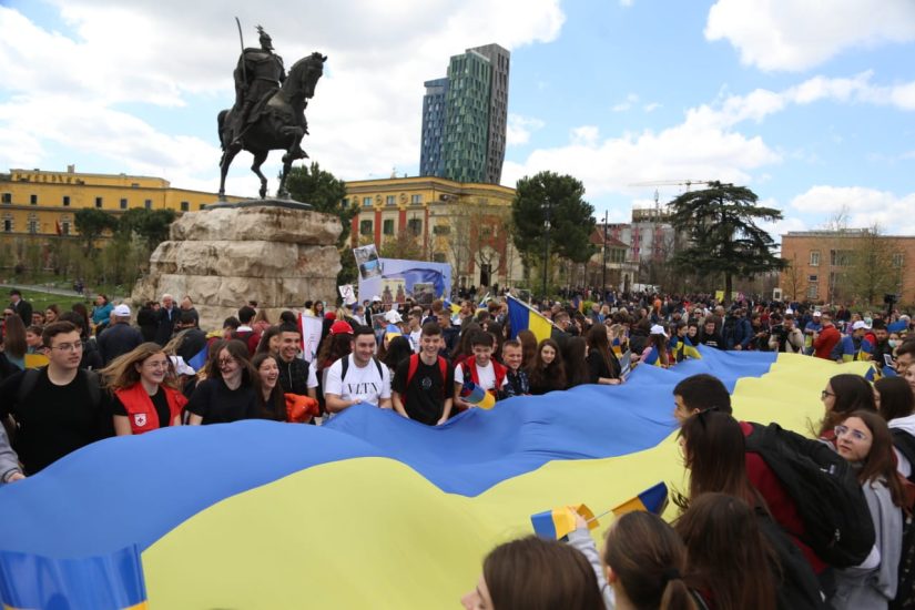 Nisi me një videomesazh të kryetarit të Bashkisë së Kievit, Vitali Klitschko, manifestimi i Tiranës në mbështetje të popullit të Ukrainës që prej javësh po përballet me agresionin rus, i cili ka shkaktuar deri tani mijëra viktima.