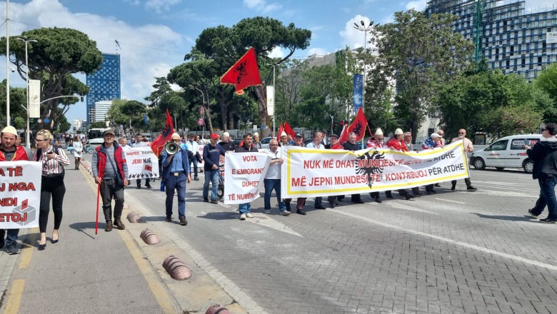 Pjesë e marshimit është dhe Grupimi i Lëvizjes Mërgimtare, që ndër të tjera kërkon që emigrantëve t’u njihet e drejta e votës.