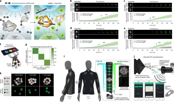 Sensorët janë krijuar për të prodhuar lloje të ndryshme të sinjaleve, përfshirë dritën ose fluoreshencën, të cilat mund të lexohen me një spektrometër dore. Studiuesit gjithashtu krijuan një spektrometër që mund të vishet, i cili mund të integrohet në pëlhurë, kështu që rezultatet lexohen dhe transmetohen përmes “wireless”-it në një smartphone ose celular.