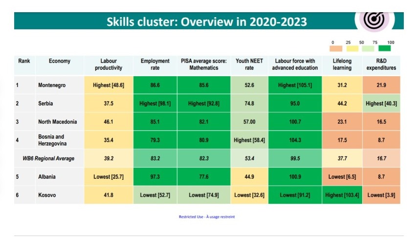 Rajoni i Ballkanit Perëndimor, përfshirë Shqipërinë, regjistron një produktivitet pune që mbetet ndjeshëm më i ulët se ai i BE-së. Indikatori i produktivitetit të punës ne Rajon arrin vetëm rreth 40% të nivelit mesatar evropian, duke reflektuar sfida strukturore dhe dobësi në aftësitë praktike të punonjësve, por Shqipëria renditet shumë keq në raport me rajonin.