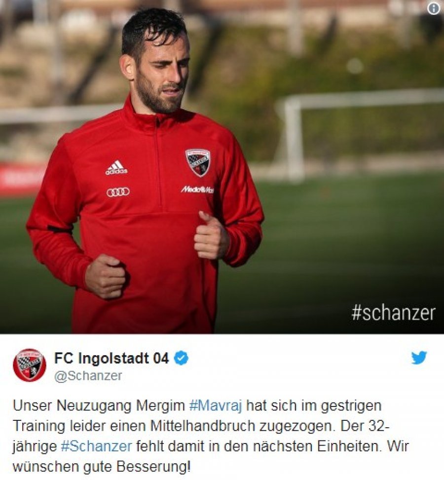 Ka nisur ters aventura e Mërgim Mavrajt tek Ingolshtadi në Gjermani. Mbrojtësi dhe kapiteni i Kombëtares është dëmtuar ditën e martë në stërvitje. Një frakturë në dorë e ka detyruar futbollistin kuqezi të lërë stërvitjen dhe të kryejë me shpejtësi ekzaminimet përkatëse për të mësuar shkallën e dëmtimit. Në spital është mësuar se Mavraj kishte nevojë për ndërhyrje kirurgjikale, kështu që i është nënshtruar asaj menjëherë.