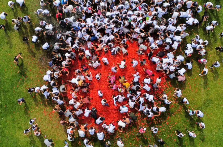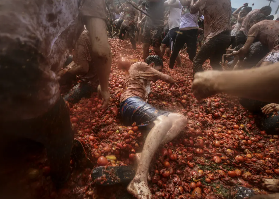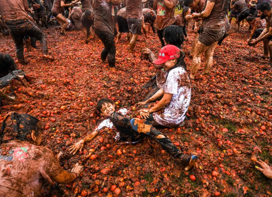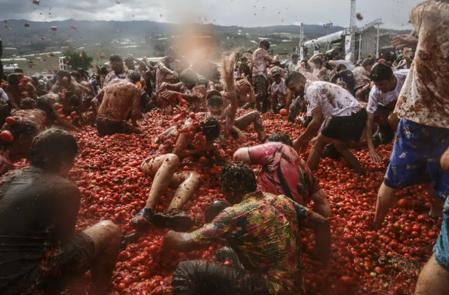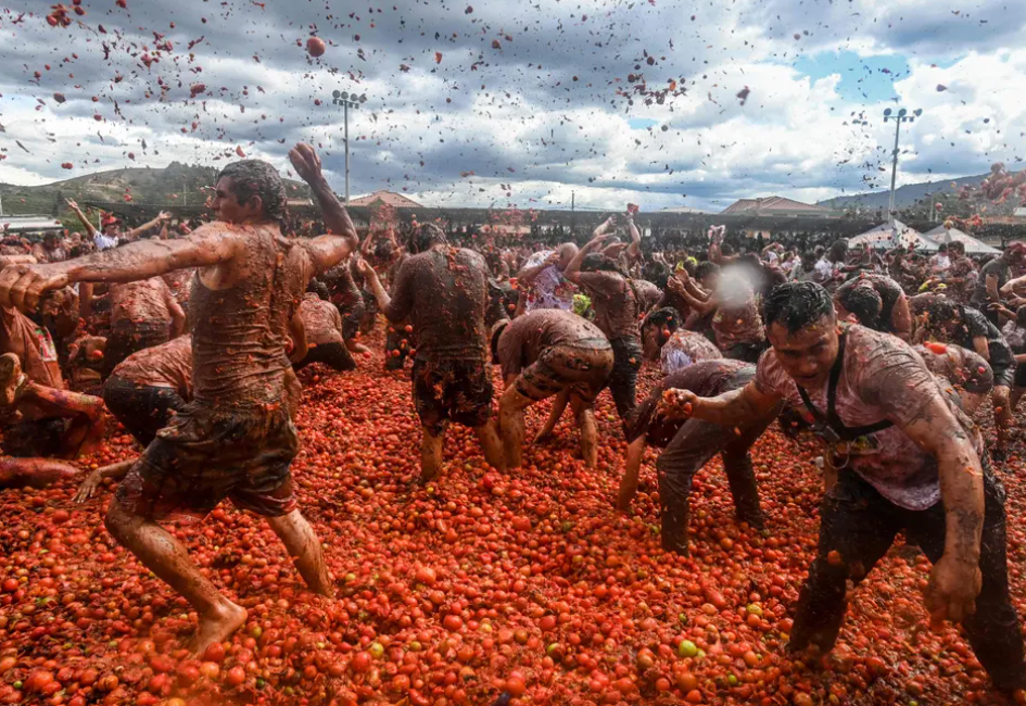 Në vitin e 15-të, festivali i domates i këtij viti është i pari që mbahet që nga heqja e kufizimeve të pandemisë Covid-19. Vendasit dhe turistët hedhin domate të pjekura për të festuar sezonin e korrjes.