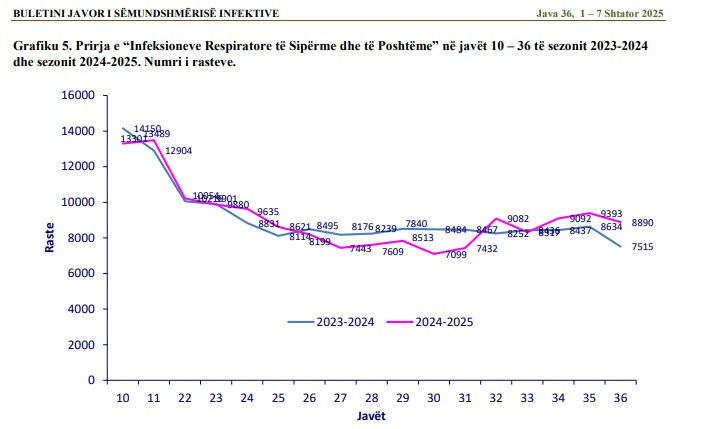 Këto të dhëna reflektojnë situatën në fund të sezonit veror, ku sipas raportit zyrtar të ISHP, numri më i madh i infeksioneve i përket atyre respiratore, ku 6545 pacientë u shtruan në urgjencat spitalore.