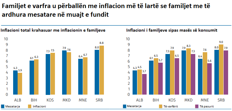 Ndërkohë familjet më të varfëra, përballen me një inflacion edhe me të lartë, 4.5%. Ndërsa ato të pasura, me inflacion më të ulët se vetë indeksi, 3.7%.