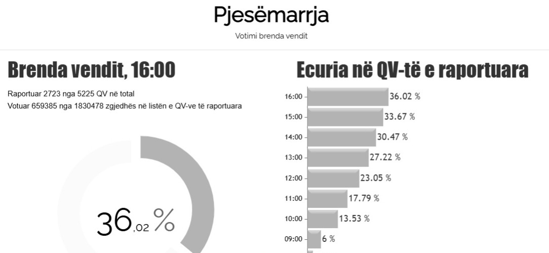 Sipas të dhënave në kohë reale nga Komisioni Qendror i Zgjedhjeve, deri më tani 36.2% e votuesve në listë i janë drejtuar kutive të votimit nga 2676 qendra votimi që kanë çuar informacionin në KQZ