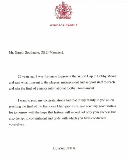 Mbretëresha Elisabet II ka dashur t’i dërgojë një mesazh personalisht trajnerit të Anglisë, Gereth Southgejt, në prag të finales së Euro 2020 ndaj Italisë. Në këtë mesazh shumë special për trajnerin anglez, ajo shkruan: