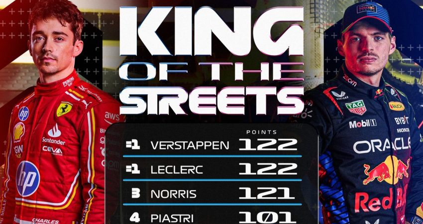 Duke kombinuar rezultatet që prodhuan këto pista shohim që nuk është një por dy “Mbretër të Rrugës, Max Verstappen dhe Charles Leclerc grumbulluan 122 pikë secili. Por holandezi ka një avantazh të lehtë për shkak të dy fitoreve në Arabinë Saudite dhe Kanada, ndaj vetëm një të monegasque-t në rrugët e Principtës ku edhe banon. Tre të parët këtu kanë një diferencë të ngushtë pasi Lando Norris ndjek dy të parët me 121 pikë. Edhe ai pas dy fitoreve në Miami dhe Singapor.