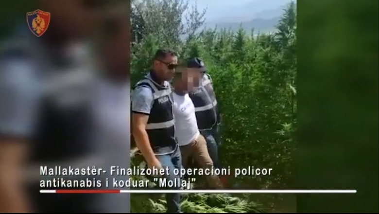 Në pranga ka rënë Hair Kalemaj 39 vjeç, i cili kishte kultivuar bimë kanabisi në tokën e tij. Ai akuzohet për kultivim të bimëve narkotike dhe armëmbajtje pa leje, pasi në banesë iu gjetën edhe 2 çifte të cilat i kishte pa leje.