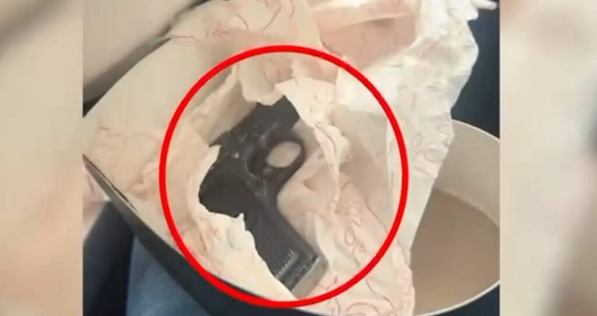 Siç duket nga pamjet e shpërndara nga policia, i riu kishte vendosur ta fshihte armën brenda një kutie në formë zemre.