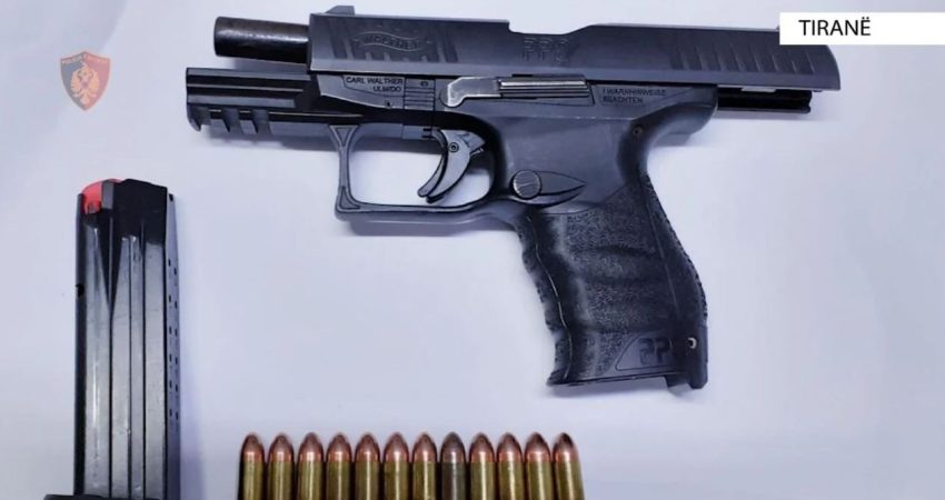 Policia thotë se në pranga ra K. Xh., 27 vjeç, banues në Tiranë. Gjatë kontrollit fizik të shtetasit 27-vjeçarit, shërbimet e Policisë i gjetën dhe sekuestruan, në cilësinë e provës materiale, një armë zjarri pistoletë, me krëhër e municion luftarak.