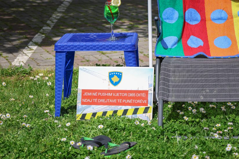 Me pankartën “Jemi në pushim vjetor 365 ditë”, një shezlong, çadër plazhi dhe një pije të vendosur përballë kryeministrisë së Kosovës, Partia Socialdemokrate (PSD) ka mbajtur një aksion simbolik si reagim ndaj të drejtave të punëtorëve, për 1 Majin.