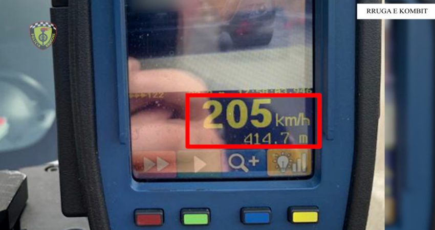“Qarkulloi me shpejtësi 205 km/orë, në Rrugën e Kombit, konstatohet nga mjetet inteligjente të Njësisë së Policisë Rrugore për Sigurinë e Autostradës “Milot-Morinë”, si dhe ndëshkohet me masë administrative 40 000 lekë të rinj dhe me masë plotësuese, drejtuesi i një automjeti tip “Audi A8””, njofton Policia. Gjatë 2 javëve të para të muajit korrik, shërbimet e Njësisë së Policisë Rrugore për Sigurinë e Autostradës “Milot-Morinë”, të pajisura me mjete logjistike bashkëkohore, ndëshkuan 144 shtetas që drejtonin automjetin përkatës, me shpejtësi nga 150 km/orë deri në 205 km/orë, prej tyre: -135 shtetas kosovarë u ndëshkuan me masë administrative sa dyfishi i masës administrative që parashikon Kodi Rrugor; -9 shtetasve shqiptarë iu është pezulluar leja e drejtimit për periudha nga 3 deri në 12 muaj, si dhe iu janë zbritur nga 5 deri në 8 pikë nga leja përkatëse e drejtimit”.