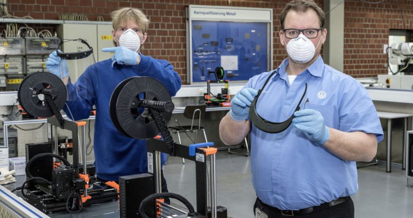 Në Suedi, në mënyrë të ngjashme, një korporatë ka qenë kyç për situatën. Prodhuesi i makinave Volvo ka konvertuar prodhimin në fabrikën e tij Tuve në Gothenburg për të bërë produkte mjekësore. Ai synonte të bënte 1.000 të tillë çdo ditë, me printera 3D.