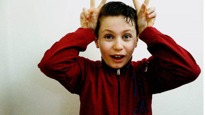 Në një moment gazmor, Ayman i bën “brirë” vetes me gishta, si çdo fëmijë 11-vjeçar kudo në botë. Fotoja mbart diçka universale dhe thellësisht çliruese: të drejtën për të qenë fëmijë.