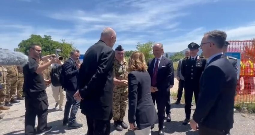 Meloni u nis me helikopter prej Rinasit drejt Gjadrit ku u prit nga kryeministri Edi Rama, ministri i Brendshë Taulant Balla dhe personeli italian i cili është angazhuar për punimet e kampit.