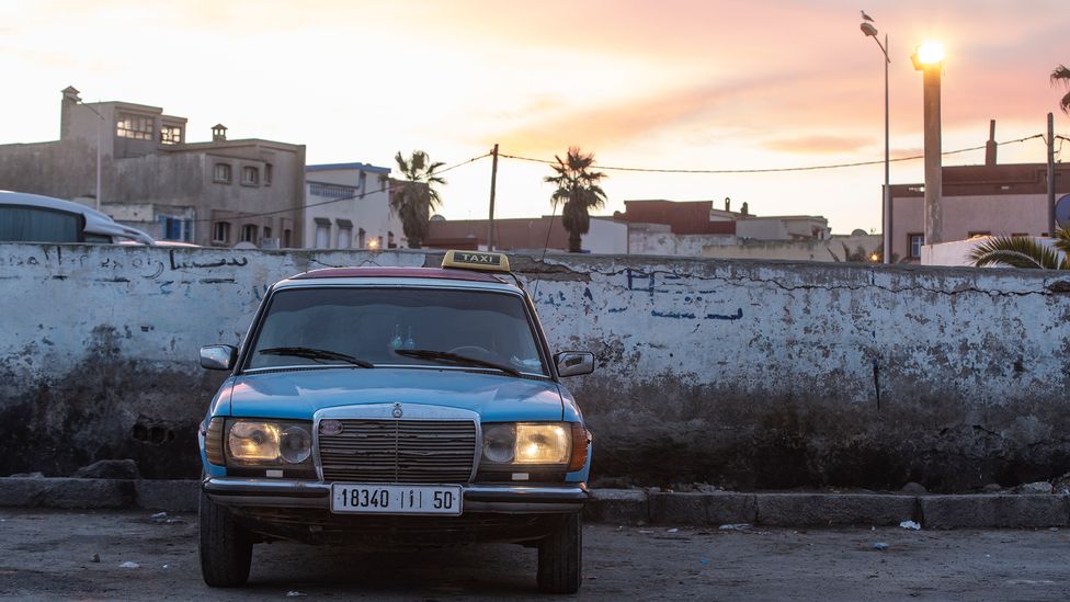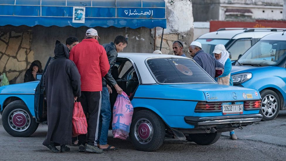 Në Marok, njerëzit nuk bëjnë thirrje për një Uber; në vend të kësaj, ata grumbullohen në taksitë e mëdha, Mercedes shumëngjyrëshe që janë përgjigja e Afrikës së Veriut ndaj makinave të cilësisë së mirë të Kubës.
