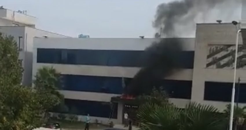 Ka qenë ish-kryebashkiaku Xhelal Mziu, i cili ka publikuar videon nga bashkia, ku duket tymi dhe flaka në hyrje të institucionit.