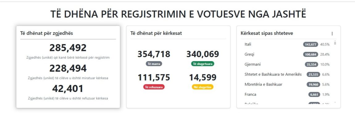 Deri tani, pak orë para përfundimit të afatit, sipas të dhënave në PER, janë regjistruar 285 mijë kërkesa nga diaspora, ku janë miratuar vetëm 228 mijë prej tyre.