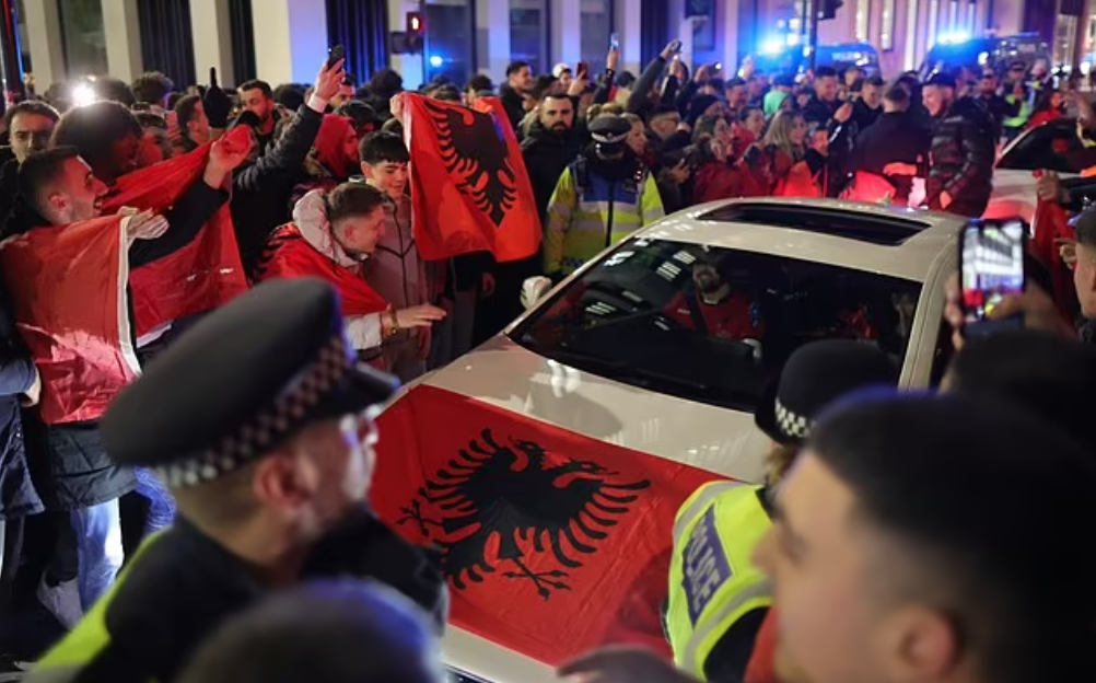 Daily Mail shkruan se rrugët rreth Westminster u bllokuan nga turma që valëvitnin flamuj shqiptarë dhe ndiznin fishekzjarrë, me Audi, Mercedes dhe makina sportive të shtrenjta që shiheshin duke lëvizur në trotuare dhe duke i rënë borive.