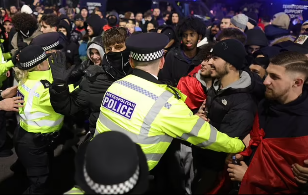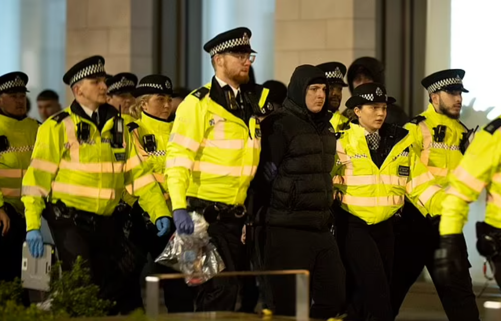 Policia Metropolitane konfirmoi se ka arrestuar shumë prej tyre pasi disa hodhën fishekzjarre drejt turmës, ndërsa të tjerë dyshohet se hodhën shishe drejt oficerëve.