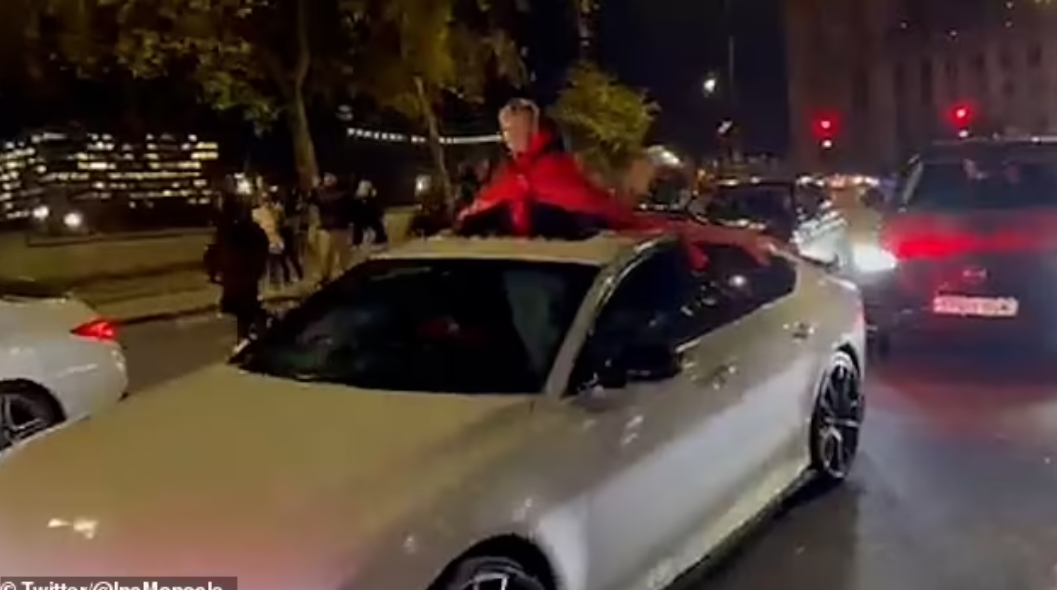 Disa njerëz u panë duke valëvitur flamuj teksa qëndronin në automjete në lëvizje, ndërsa të gjitha rrugët u bllokuan.