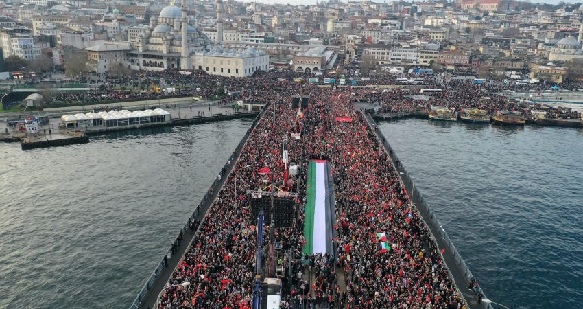 Mijëra njerëz janë mbledhur për një ngjarje të titulluar “Mëshirë për dëshmorët tanë, mbështetje për Palestinën, mallkim për Izraelin” në disa xhami gjatë lutjeve të mëngjesit për t’iu bashkuar një procesioni të organizuar nga një OJQ e Turqisë.