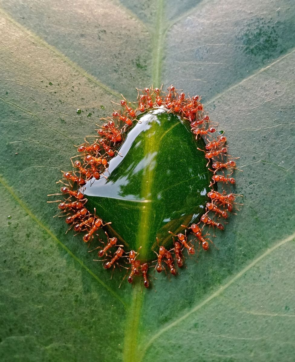Fotografi Vishwanath Birje është shpallur fituesi i konkursit të fotografisë të Shoqërisë Mbretërore të Biologjisë në Britani për fotografinë e tij të milingonave që ushqehen me mjaltë.!/BBC/