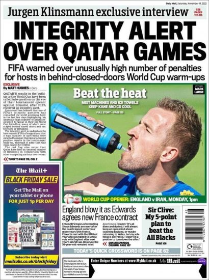 Kryeartikulli i ‘Daely Mail’ per ndeshjet e manipuluara te Katarit. Gazeta Si, 19 nentor 2022