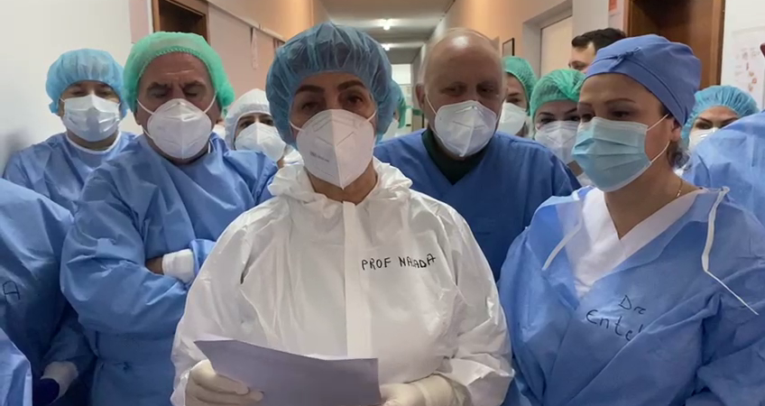 Shefja e Spitalit Infektiv, Najada Çomo me në krah kolegët e saj të këtij spitali shpërndau një mesazh, ku i vlerësonte akuzat e Bashës si tronditëse dhe goditje për profesionalizimin dhe përpjekjet e mjekëve në betejën 9-mujore kundër infeksionit.