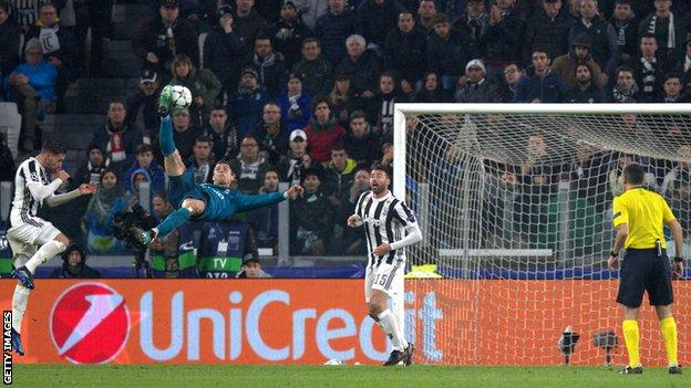 Ishte ndeshja e parë e gjysmëfinaleve të Ligës së Kampioneve për sezonin 2017-18 mes Juventus dhe Real Madrid. Minuta e 63-të do të mbahet mend gjatë nga të gjithë tifozët për atë që portugezi Kristiano Ronaldo realizoi. Pas një krosi në zonë nga Karvahal, CR7 bëri të pamundurën, duke e çuar atë top në rrjetë me një roveshatë perfekte. Ishte goli që e çoi ndeshjen në 2-0 por dhe që vulosi dashurinë e tifozëve të Juventus për portugezin. Të gjithë e mbajnë mend reagimin e trajnerit Zinedin Zidan dhe të publikut në “Juventus Stadium” që u ngrit i gjithi në këmbë për të duartrokitur kryeveprën e sulmuesit të Real Madrid.