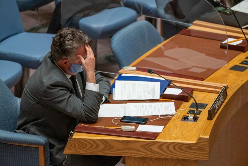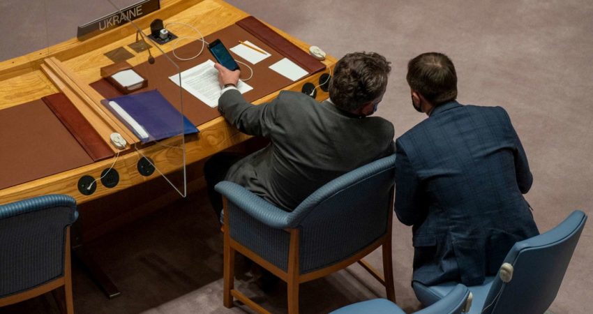 Gazeta Si – Gjatë mbledhjes së Këshillit të Sigurimit të Kombeve të Bashkuara, ambasadori ukrainas Sergiy Kyslytsya, merr lajmin për shpalljen e luftës ruse përmes whatsapp. Përmes fotove të publikuara nga AFP, mund të shihen mesazhet, por nuk kuptohet bashkëbiseduesi.