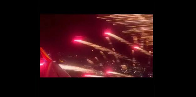 Astonishing footage showing the moment numerous fireworks explode around a plane! ✈️ Video also shows footage from a passenger inside the plane. 😲 pic.twitter.com/BDX9osAieA