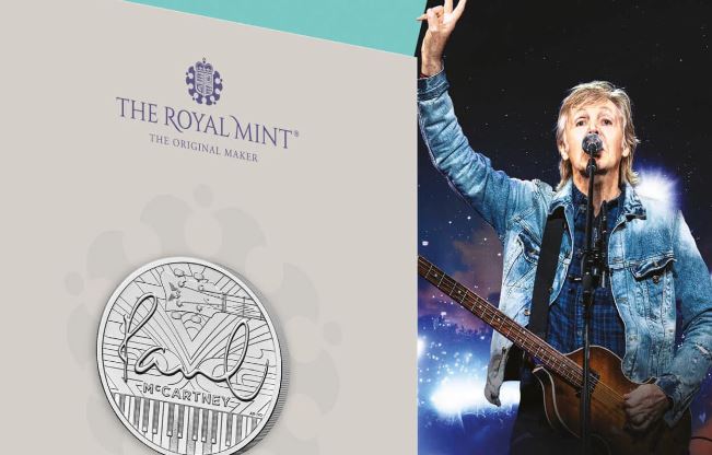 Legjenda e muzikës pop, Paul McCartney, pasi ka fituar çmime të panumërta dhe ka bërë historinë e kopertinave të disqeve, do të krenohet tani me një koleksion të monedhave me vlerë pesë paund, të krijuar nga Posta Mbretërore Britanike.