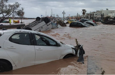 Moti i keq ka përfshirë ishujt e njohur grekë, Paros dhe Mykonos, duke shkaktuar përmbytje, rrëshqitje dherash dhe dëmtime të shumta në infrastrukturë. Shirat e dendur i kthyen rrugët në lumenj.