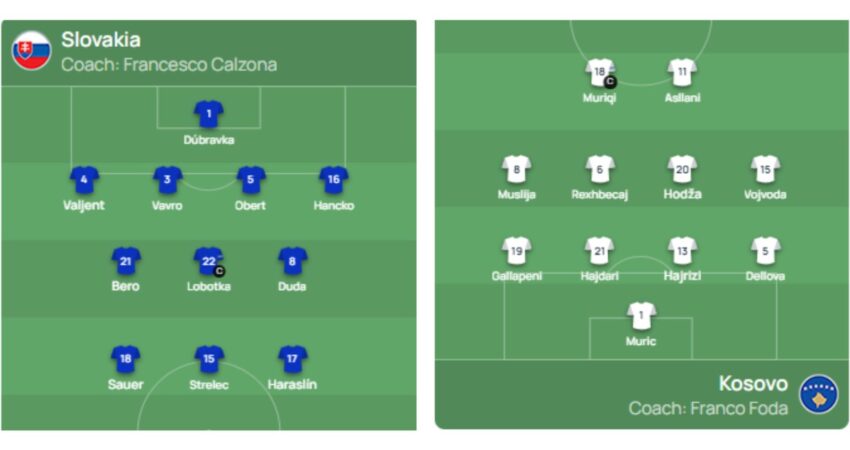Sllovaki-Kosovë është një tjetër ½ finale e playoff-it në zonën e Europës. Nën drejtimin e Franco Fodës, dardanët luajnë me rrjeshtimin klasik 4-4-2 në transfertën e mbrëmjes.