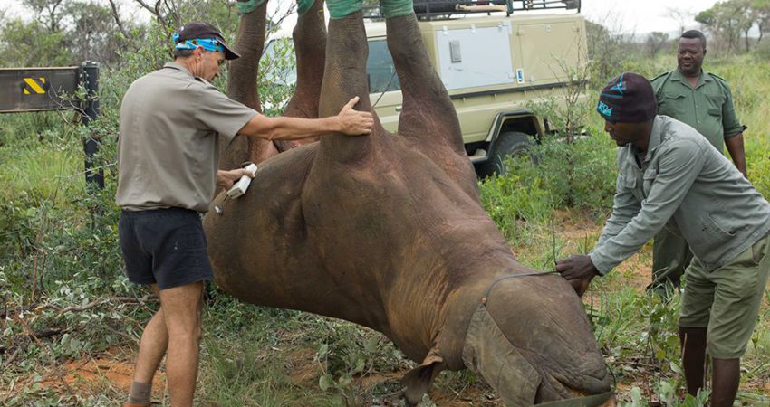 Dhe kështu, ekipi i tij, në bashkëpunim me Ministrinë e Mjedisit, Pylltarisë dhe Turizmit të Namibisë, “ngritën” 12 rinoceronë nga këmbët e tyre me një vinç dhe matën “përgjigjet” e tyre fizike.