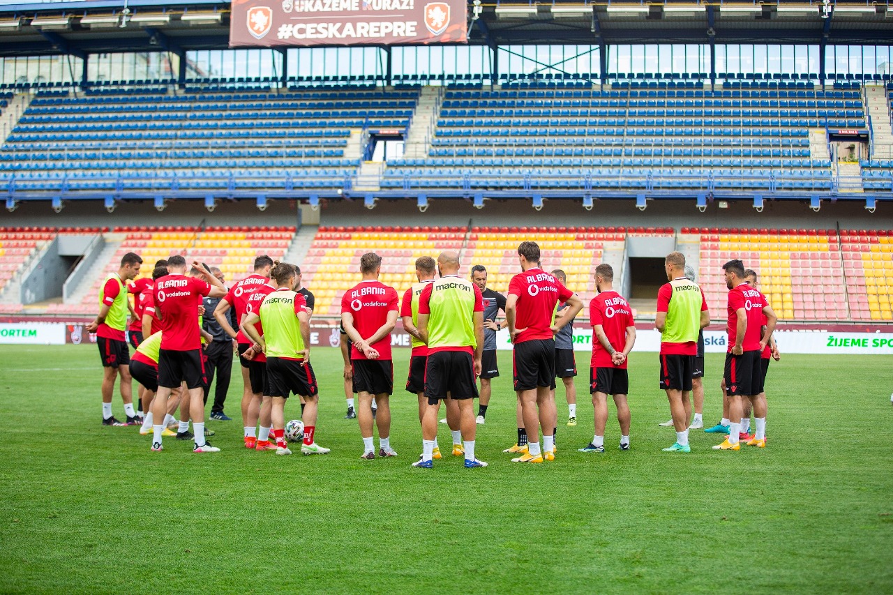 Kuqezinjtë zhvilluan stërvitjen e fundit sot pasdite në stadiumin “Generali Česká pojišťovna Arena” të Pragës, ku do të luhet ndeshja me Çekinë, në orën 20:15. Të gjithë lojtarët kanë marrë pjesë në stërvitje dhe janë të gatshëm për trajnerin Reja.