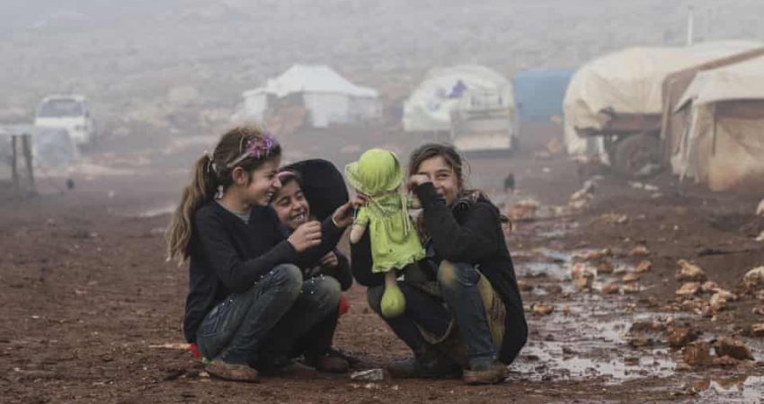Një fotografi që të trishton është kjo e disa vajzave të vogla në kampin e refugjatëve në Siri të cilat, në baltë, qeshin me një kukull që e kanë gjetur.