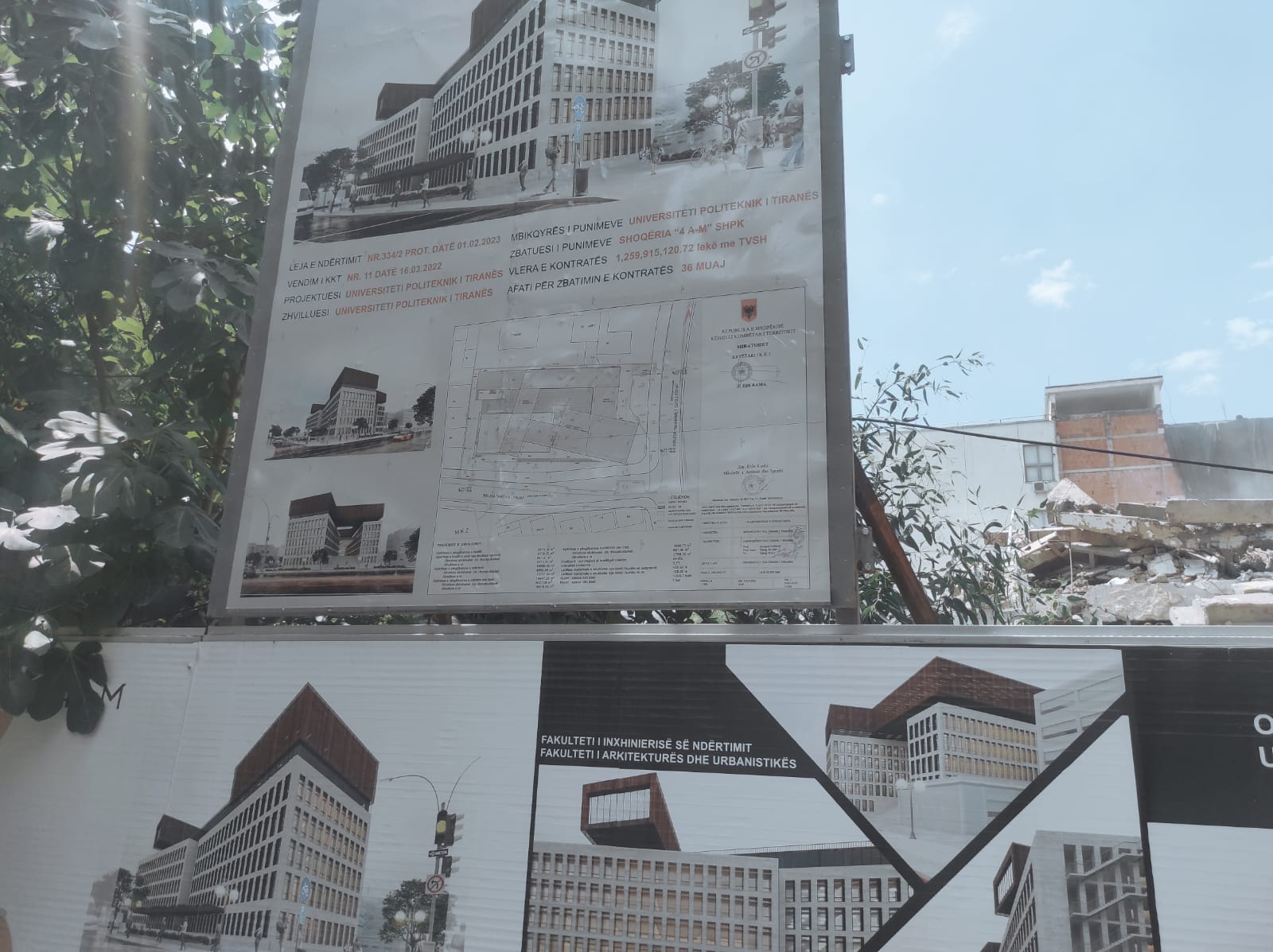 Nëse bën një vëzhgim të thjeshtë, duke ecur në këmbë nga Zogu i Zi në drejtim të rrugës “Muhamet Gjollesha”, sheh se si shtëllunga pluhuri përhapen në ajër pasi prej disa ditësh ka nisur shembja e godinës së ish-fakultetit të Inxhinierisë së Ndërtimit.