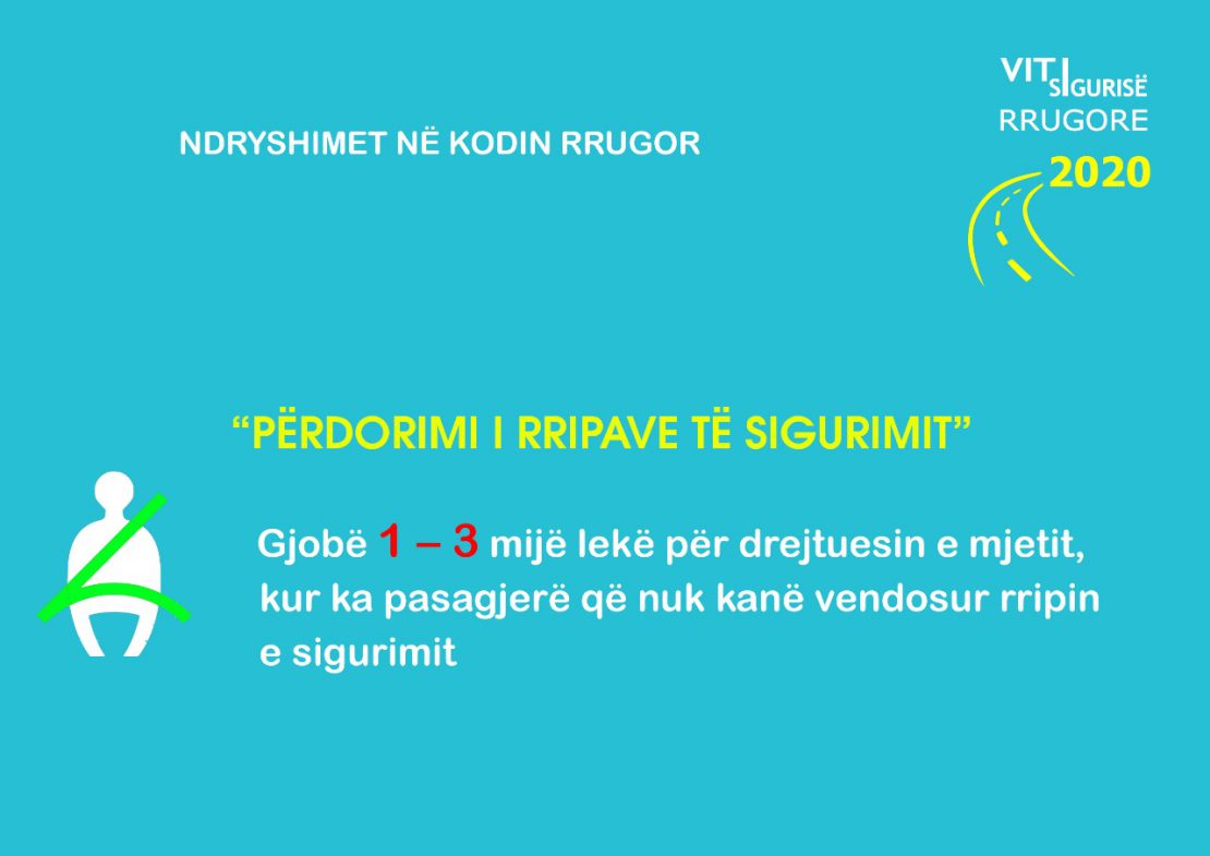 Policia ka propozuar ashpërsimin e gjobave për shoferët në rast të shkeljes së rregullave të qarkullimit.. Gjithashtu gjobë do të vendoset për shoferin edhe nëse në mjetin e tij gjenden pasagjerë që nuk e kanë vendosur rripin e sigurimit.