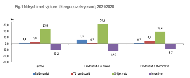 Në 2021-shin, u rrit numri i bizneseve, por investimet ranë. Shërbimet ‘mbajtën’ tregun e punës