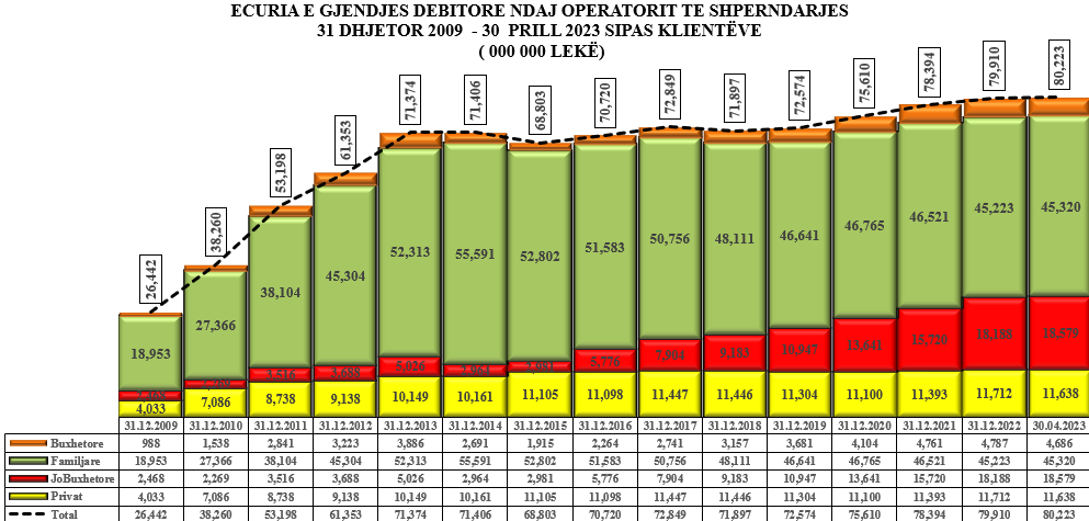 Por ERE raporton se gjatë kësaj periudhe janë rritur borxhlinjtë ndaj OSHEE-së. Gjendja debitore nga fundi i 2022-shit deri në fund të prillit 2023 është rritur me 100 mln lekë.