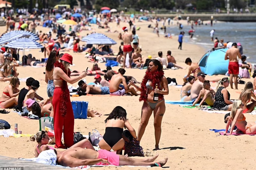 Australia po shijon një Krishtlindje me temperatura të larta në pjesën dërrmuese të vendit dhe njerëzit kanë përfituar që ta kalojnë festën në plazh.