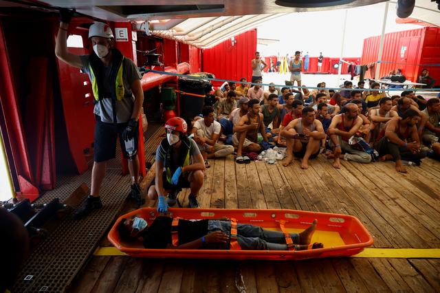 Pamjet nga bordi i anijes së shpëtimit të OJQ-së Proactiva Open Arms Uno në Detin Mesdhe qendror.