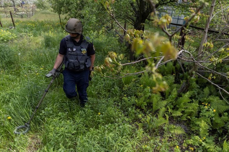 Në Borodyanka të Ukrainës pastrohen me kujdes minat e lëna nga rusët