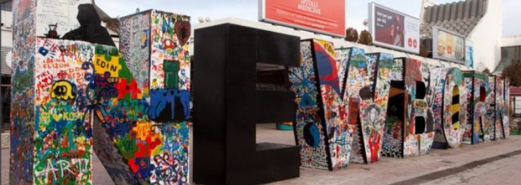 Monumenti i pavarësisë së Kosovës, NEWBORN, që gjendet në Prishtinë, pothuajse çdo vit trajton një temë të ndryshme, si një mesazh i Kosovës për botën.