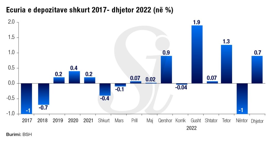 Tre mujori i fundit i vitit solli një valë të re të rritjes së çmimeve nga mesi i tetor-nëntorit, kur u bë dhe rritja e fundit e normës së interesit. Atë kohë, kursi i euros u zhvlerësua në rekorde historike duke u blerë me deri në 113 lekë. Kriza e çmimeve që nisi nga lufta në Ukrainë, u pasqyrua shumë shpejt dhe në stokun e depozitave që nisi të rimëkëmbej vetëm në korrik 2022.