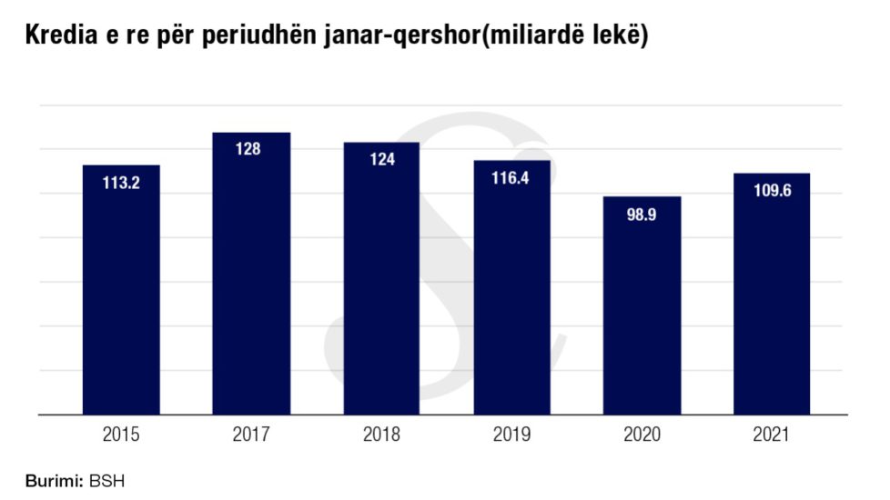 Për qershorin, kredia e re për bizneset ra me 22%, ndërsa për individët ajo shënoi një rritje me 83% krahasuar me të njëjtën periudhë të vitit të kaluar.