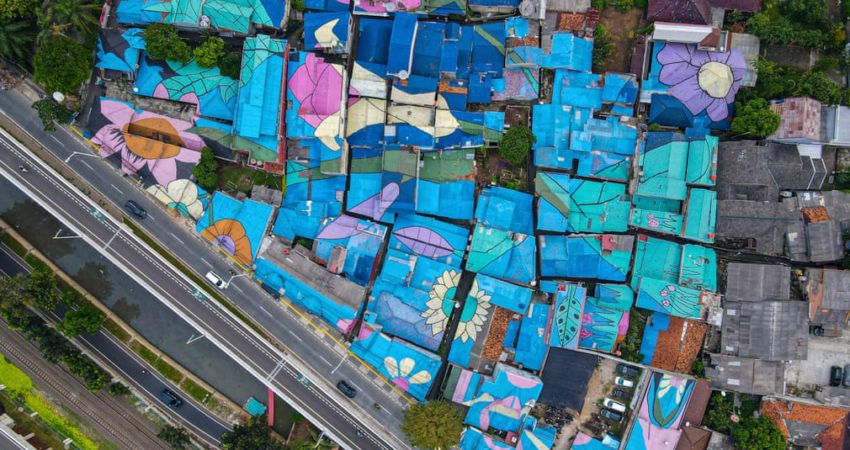 Një imazh ajror i shtëpive i lyer nga qeveria lokale në Indonezi tregon se atje kujdesen dhe për tarracat e shtëpive dhe bukurinë e tyre.